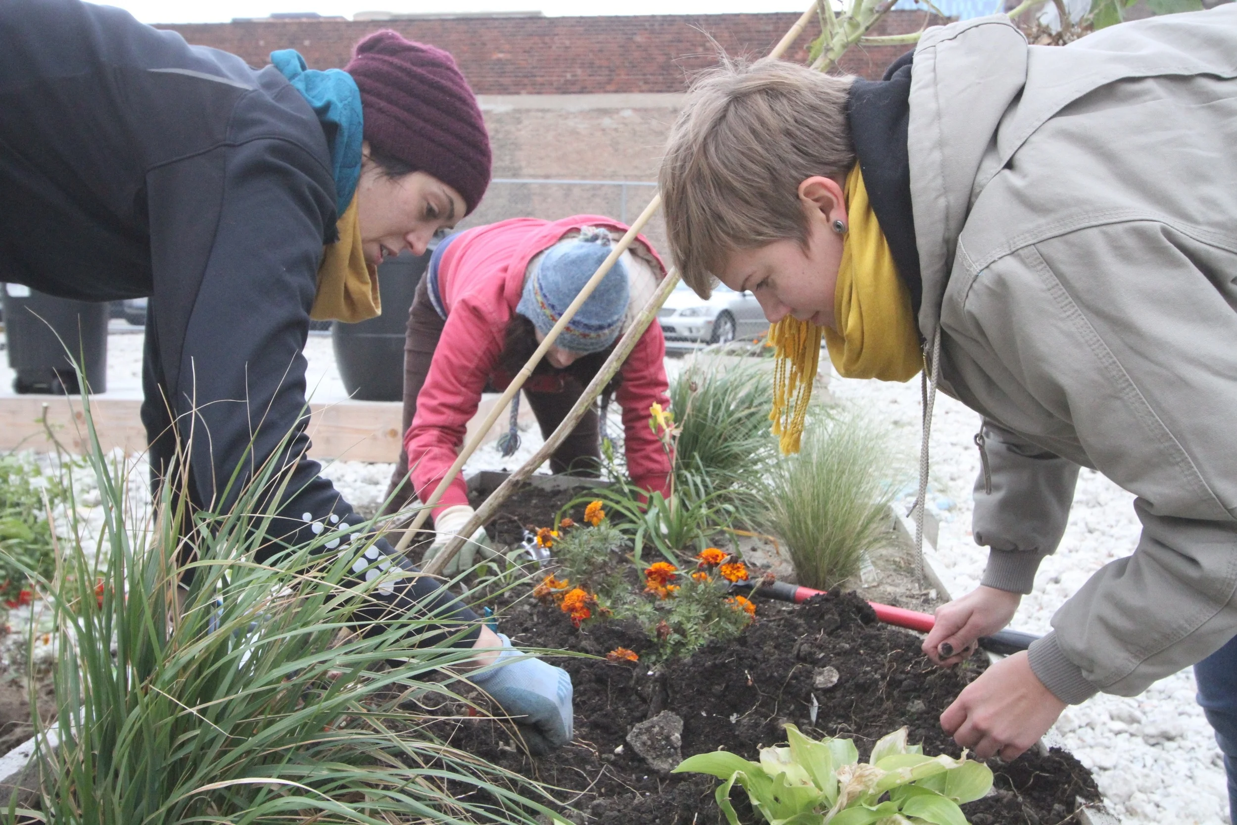 Students prepare the beds for the first winter in the Papermaker's Garden 1.0 in 2012. We had a successful first summer, and the garden was remodeled in early 2013.